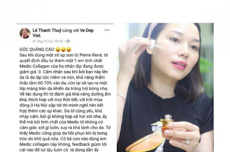 "Chưa 30 tuổi mà đã ngấp ngó sợ da lão hóa, nếp nhăn rồi. Em mới hốt e Medic Collagen này bên về dùng thử. Thấy hội chị em review dùng thích lắm, nào là da căng lên, nhẵn bóng và bớt lão hóa, nếp nhăn nên em cũng mua dùng thử xem" khách hàng nick facebook Nguyễn Mai chia sẻ