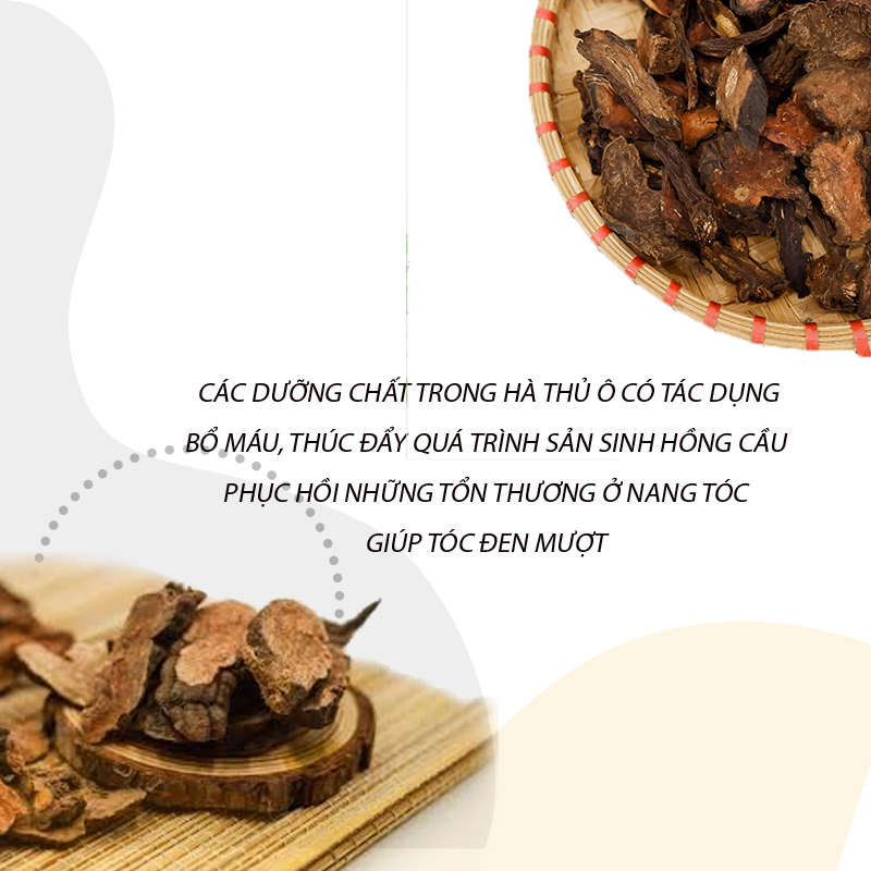 “Muốn cho xanh tóc, đỏ da. Rủ nhau lên núi tìm Hà thủ ô”. Không phải ngẫu nhiên dân gian có câu này, bởi Hà thủ ô được ví như “thần dược” dân gian trị tóc rụng, tóc bạc và hỗ trợ mọc tóc. Các dưỡng chất trong Hà thủ ô có tác dụng bổ máu, thúc đẩy quá trình sản sinh hồng cầu; tăng sinh tân dịch; bổ gan và bổ thận giúp nuôi dưỡng, phục hồi những tổn thương ở nang tóc, làm chậm quá trình lão hóa, giúp tóc đen mượt.