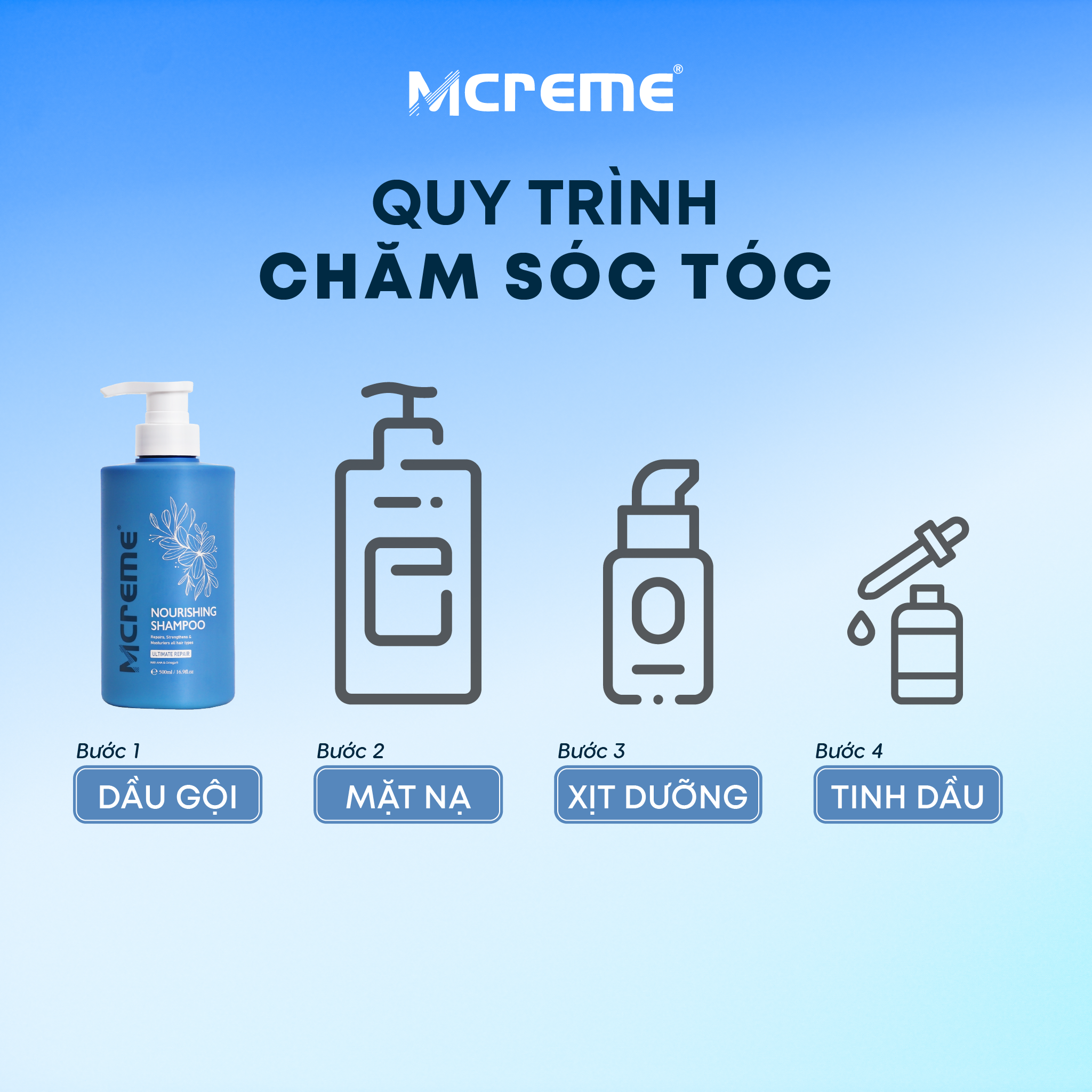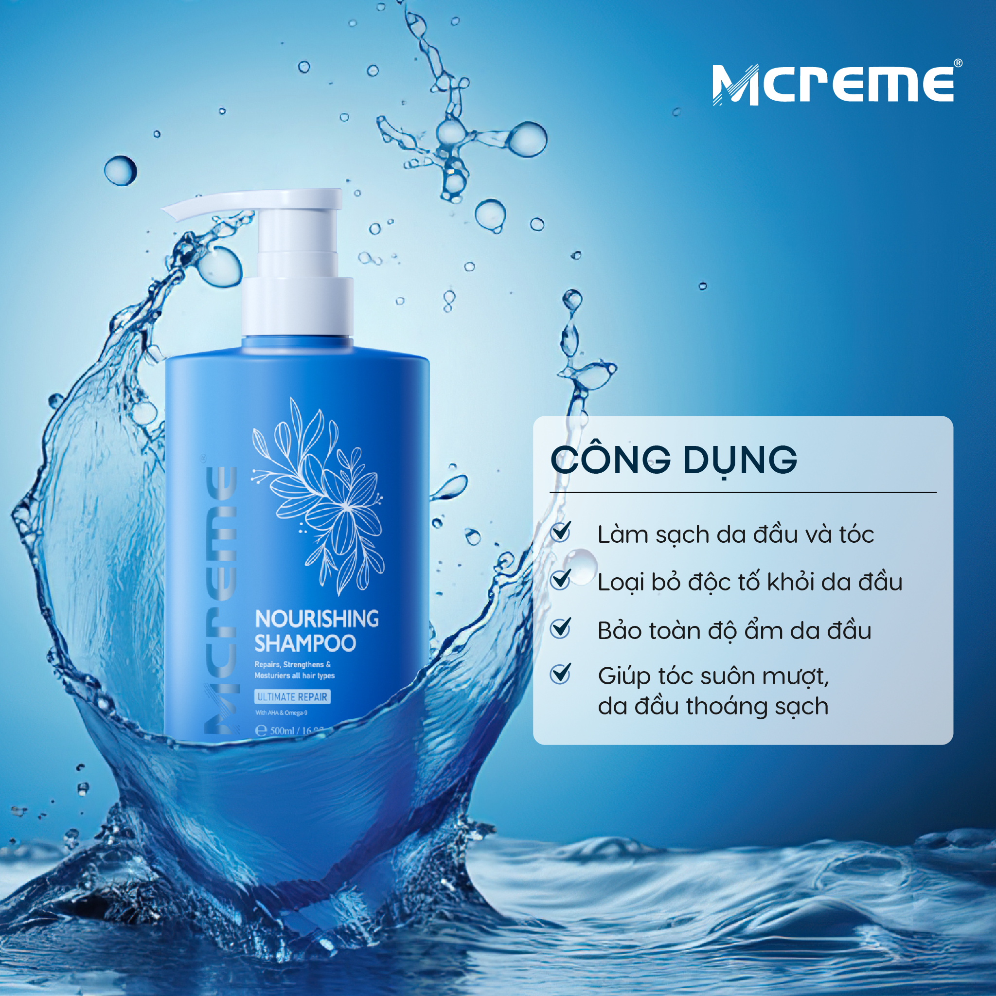 Bộ Gội Xả Mcreme Phục Hồi, Nuôi Dưỡng Tóc Hư Tổn Mcreme Nourishing Shampoo & Conditioner 500ml 3