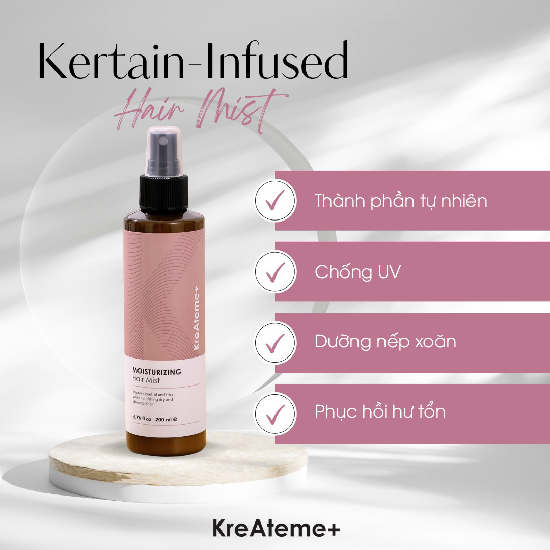 Xịt Dưỡng Tóc Siêu Mượt, Siêu Phục Hồi, Chống Nắng, Giữ Nếp Không Gây Bết Dính Kreateme+
