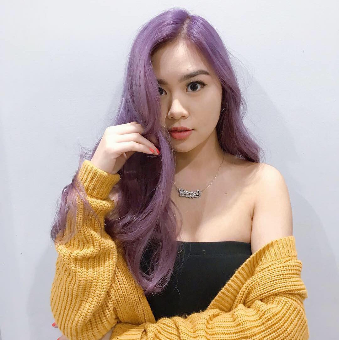 1. Nhuộm tóc màu tím nhạt kết hợp tông pastel