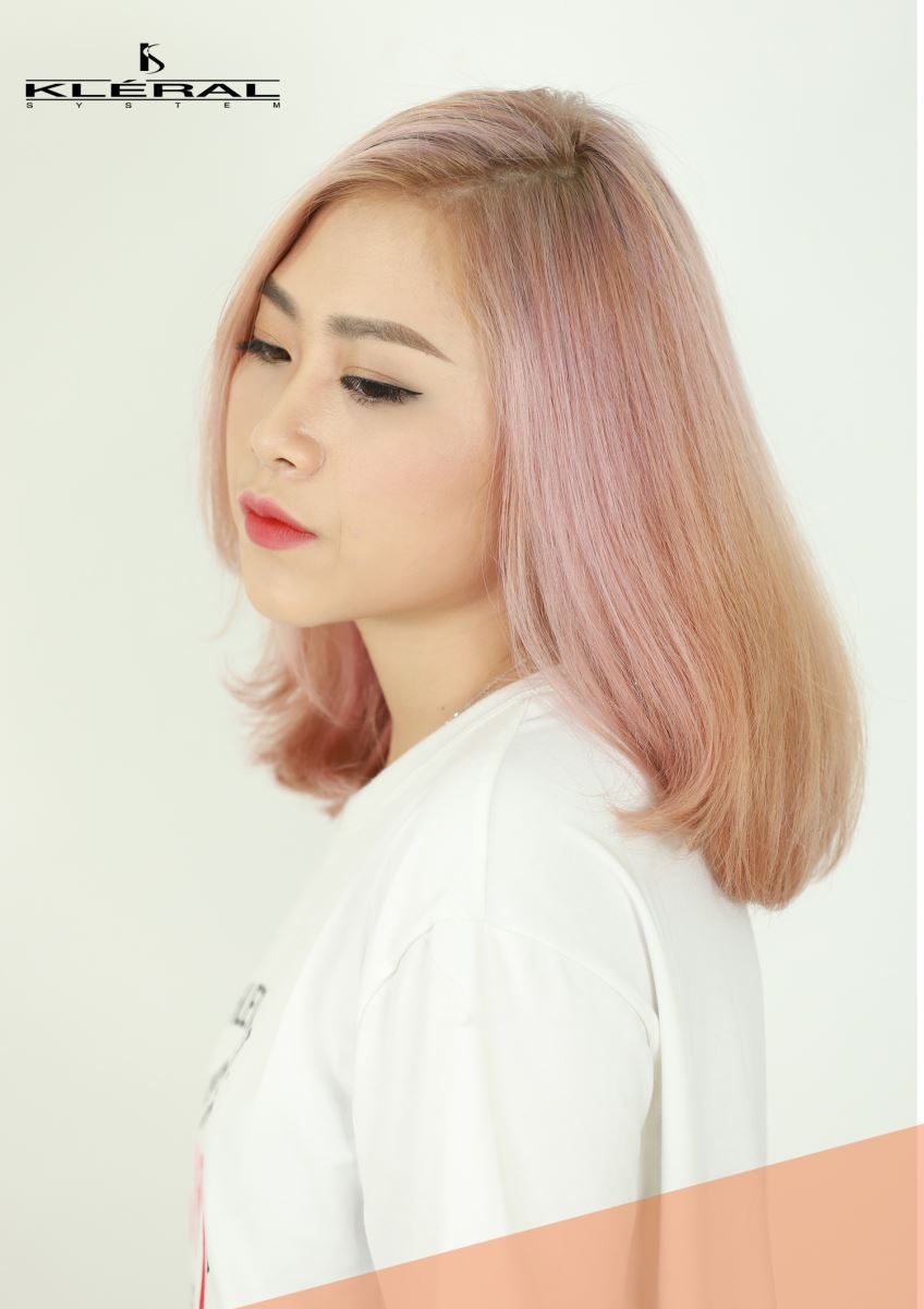 Việc nhuộm tóc với một gam màu sáng, tươi trẻ sẽ giúp mọi người quên đi phần tóc mỏng của bạn. Vậy thì sao chúng ta không thử cắt tóc ngang vai và nhuộm hồng giống Hailey Bieber bạn nhỉ?