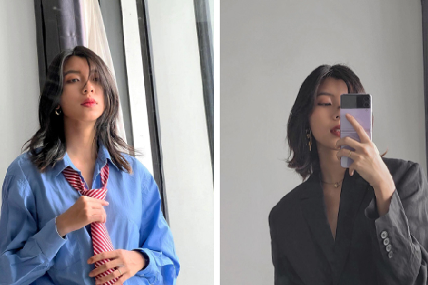 Áp dụng kiểu tóc ngắn layer, bạn diện trang phục đơn giản như bộ suit, áo len màu trung tính + quần âu, hay áo sơ mi + quần jeans, thì vẻ ngoài vẫn nổi bật, ấn tượng. Ngoài ra, tô điểm thêm một đôi khuyên tai vàng cũng là cách hay để nàng tóc ngắn trông long lanh, sang trọng hơn trong dịp Tết.